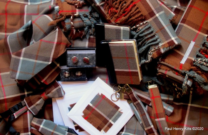 A selection of accessories from a commissioned tartan