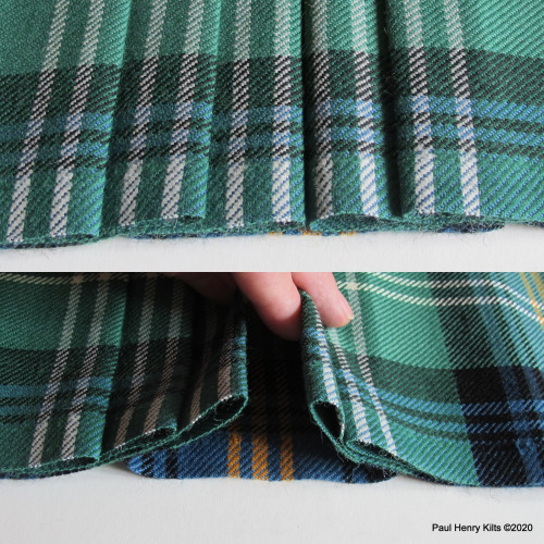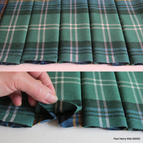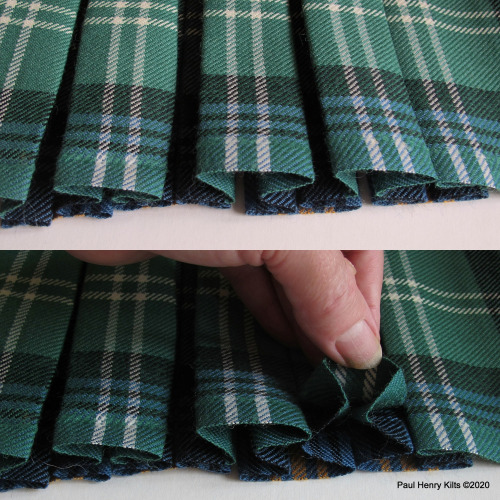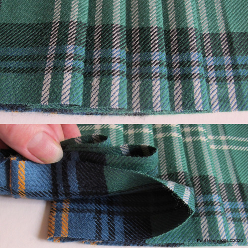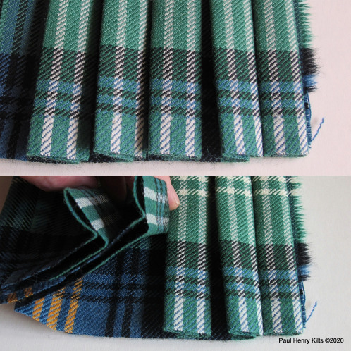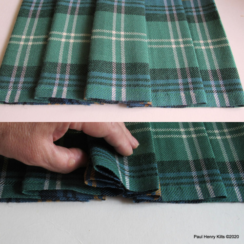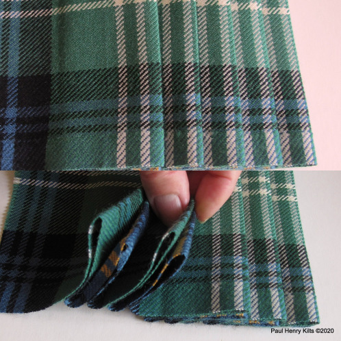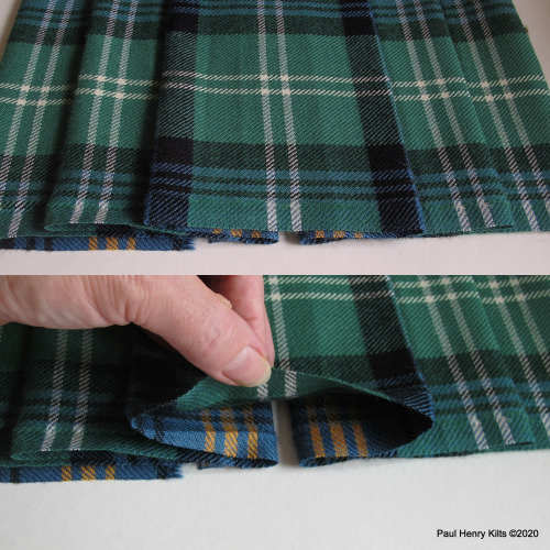 A curious method but useful if the tartan sett is large as extra deep pleats can prove a little awkward in use, and also the doubled pleats behave very well and create a good swish